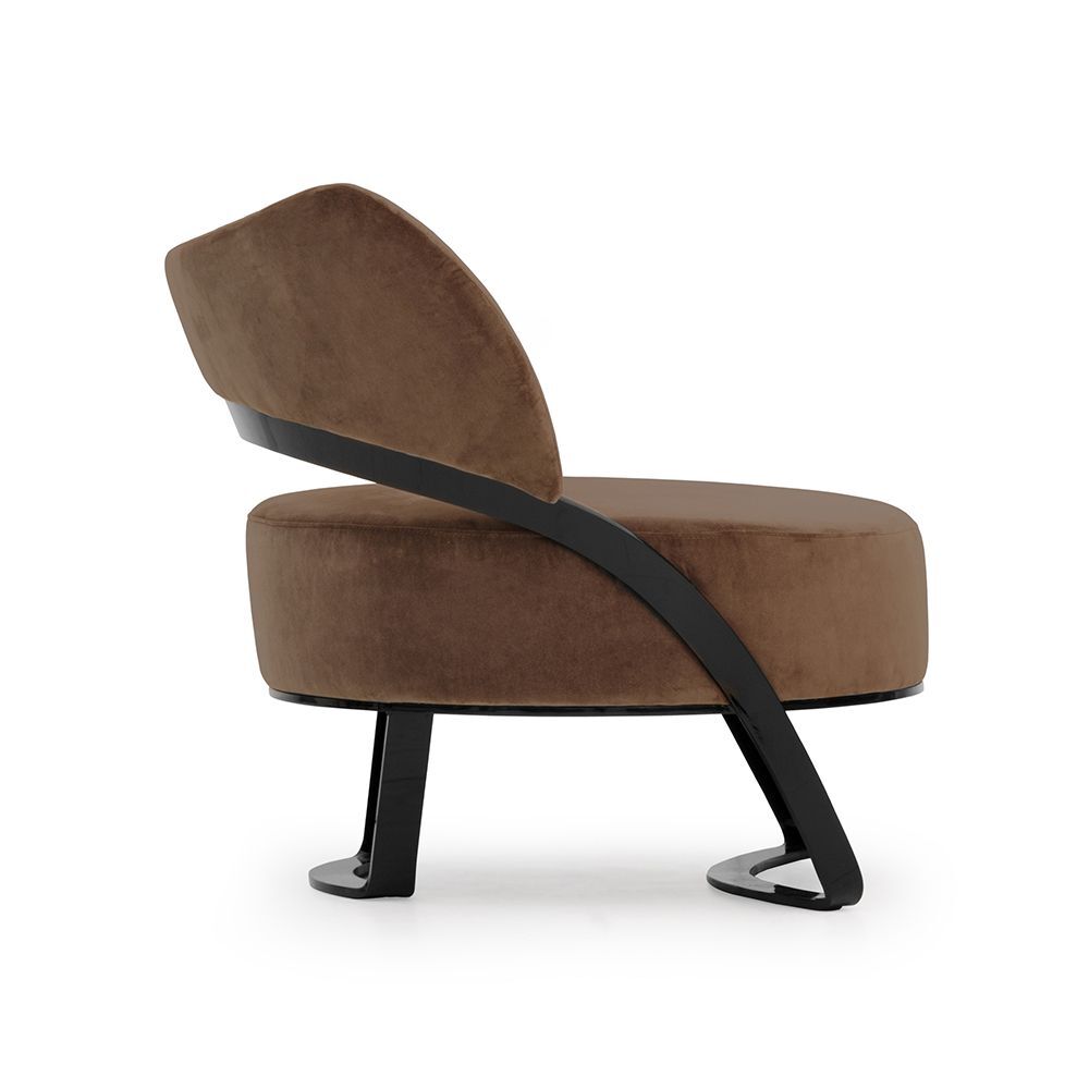 Кресло GOTHAM от итальянской фабрики FORMITALIA – воплощение современного дизайна и безупречного качества. Металлическая конструкция с глянцевой черной отделкой сочетается с мягкой обивкой из роскошного вельвета, создавая эффектный контраст.