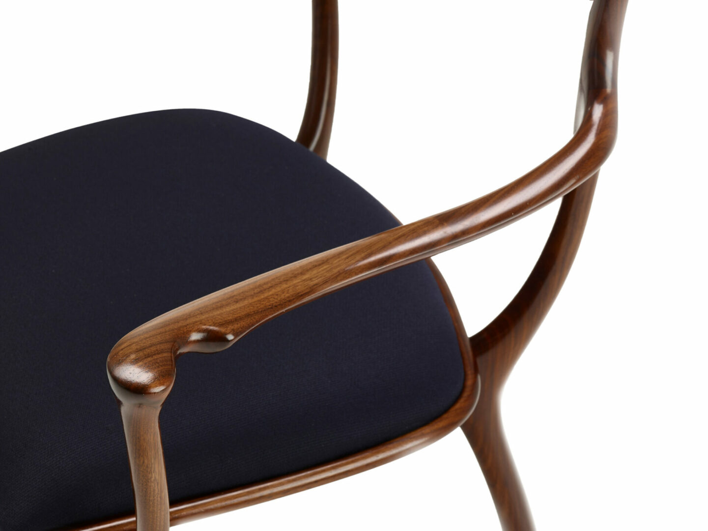 Кресло HYPNOS выполнено из цельного американского ореха, что придаёт ему не только прочность, но и элегантный вид. Каждая деталь кресла тщательно продумана, чтобы обеспечить максимальный комфорт и поддержку. Сиденье из фанеры и мягкие подушки создают уютную атмосферу, в которой приятно проводить время. Это кресло станет идеальным дополнением как для изысканных гостиных, так и для уютных кабинетов.