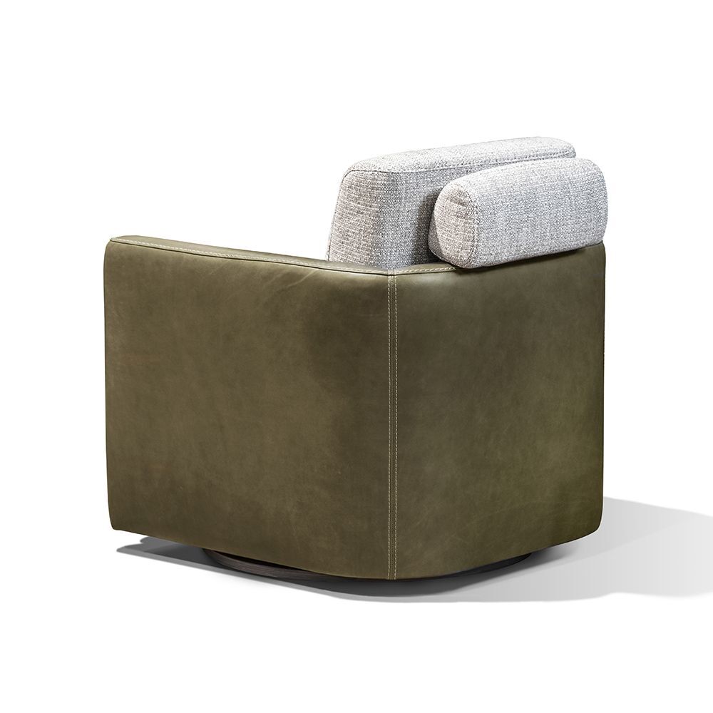 Особенности: съемный подголовник из той же ткани, поворотное основание из серого шпона дуба с матовой отделкой. Габариты: 77×85×82,5 см. Итальянское качество и продуманный дизайн делают это кресло стильным и функциональным элементом мебели.