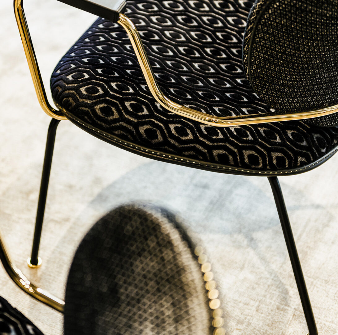 Представьте, как это кресло преображает пространство: в кабинете оно становится символом респектабельности, в гостиной — изысканным акцентом, а в спальне — уголком для отдыха. Kalida гармонично сочетается с мебелью из коллекций Black Tie, позволяя создать целостный ансамбль в единой стилистике.