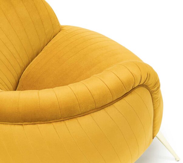 Кресло KELLIT отличается элегантным силуэтом и современными линиями, которые гармонично вписываются как в классические, так и в современные интерьеры. Золотые хромированные металлические ножки добавляют нотку утонченности и стиля, создавая впечатление легкости и воздушности. Это кресло станет идеальным акцентом в любом помещении, будь то гостиная, кабинет или спальня.