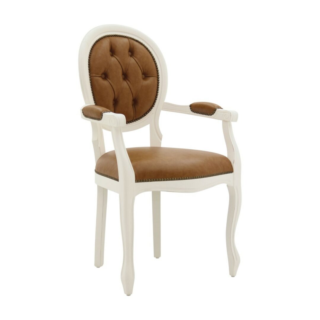 Задняя крышка кресла, застегнутая на пуговицы, является дополнительным штрихом элегантности, подчеркивающим статусность изделия. Размеры кресла (высота 101 см, ширина 57 см, глубина 61 см) делают его компактным и при этом весьма комфортным. Высота сиденья составляет 50 см, а высота подлокотников — 70 см, что обеспечивает удобное размещение и поддержку.