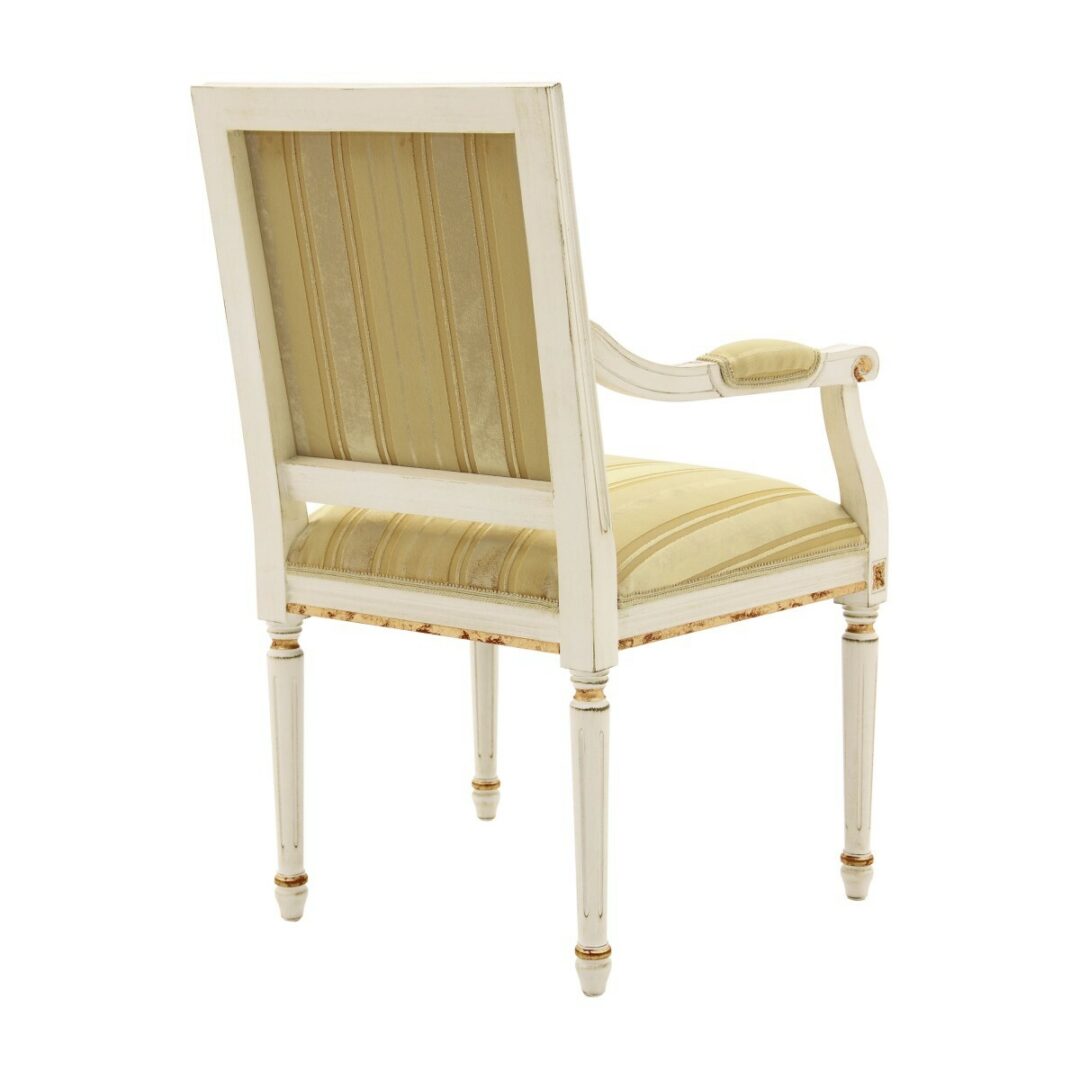 Вдохновленное стилем Людовика XVI, кресло LUIGI отличается изысканными линиями и утонченной резьбой на буковых ножках. Этот элемент дизайна не только подчеркивает стиль, но и создает атмосферу респектабельности и уюта. Вы можете выбрать отделку, дополненную серебряным или сусальным лаком, что позволит вам создать уникальный и запоминающийся интерьер.