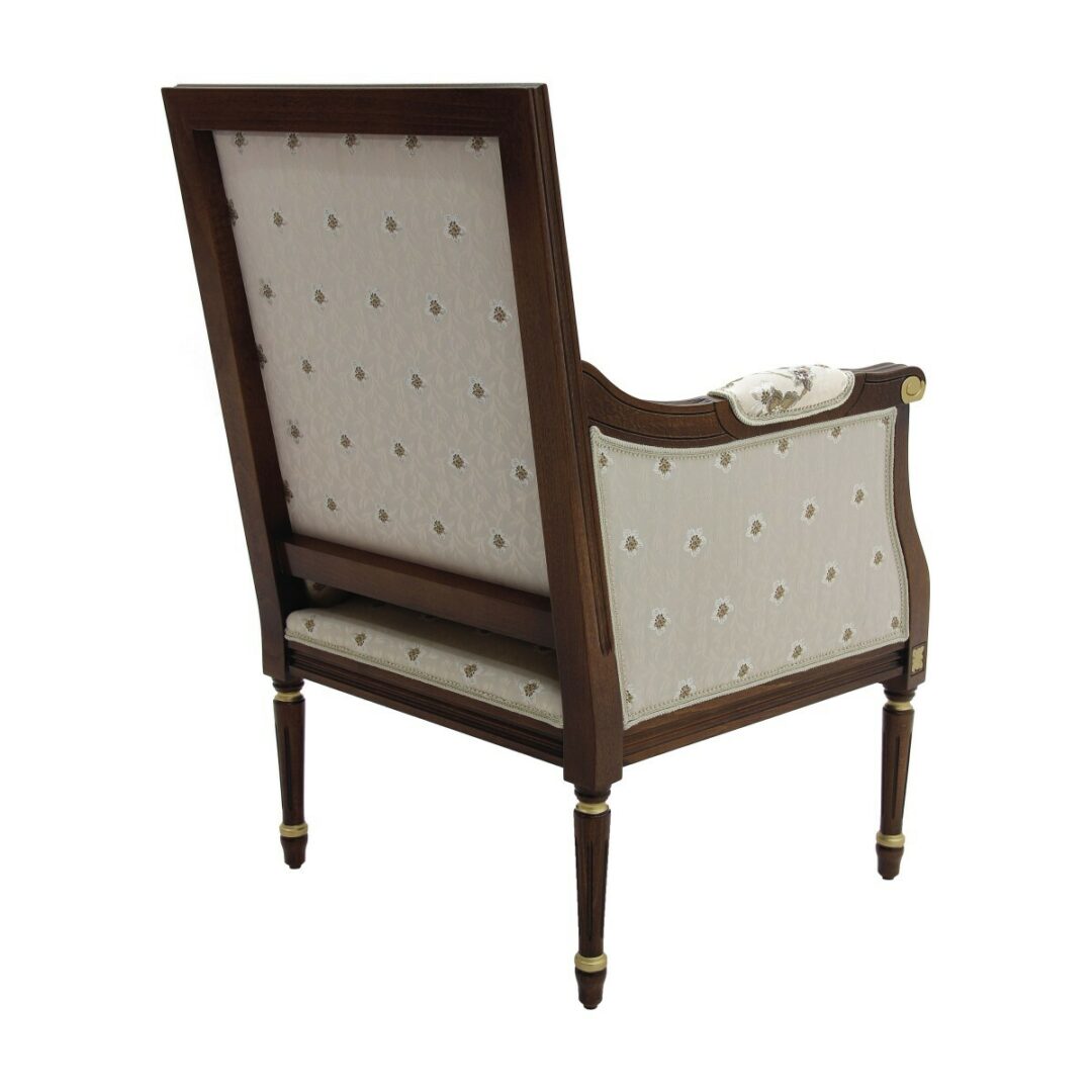Кресло LUIGI – это элегантное изделие в стиле Людовика XVI, выполненное из высококачественного букового дерева. Оно сочетает в себе утонченность и комфорт благодаря обивке, созданной с использованием лучших материалов – ремней и пенопласта.