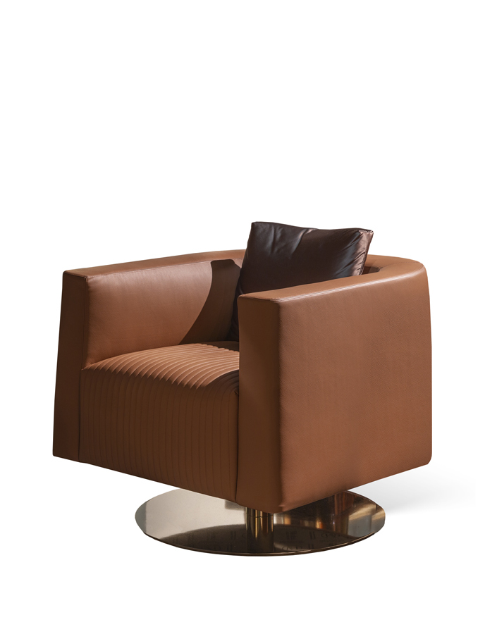 Кресло MN501 от итальянской фабрики MEDEA – элегантное решение для современного интерьера. Модель с поворотным металлическим основанием предлагает комфорт и функциональность. Доступно в двух вариантах обивки: ткань или натуральная кожа. Дополнительный декор в виде кармана добавляет практичности.