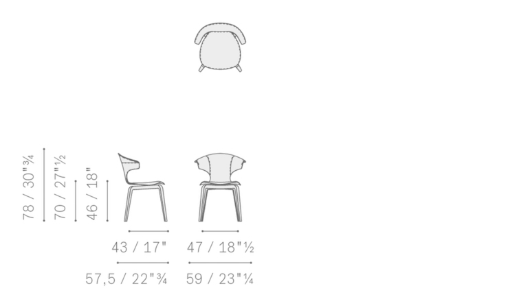 Корпус из формованной буковой фанеры и пенополиуретановой набивки обеспечивает комфорт, а ножки из массива ясеня с отделкой венге или мока добавляют солидности. Металлическое основание с пескоструйной обработкой придает современный акцент. Итальянское мастерство в каждой детали.
