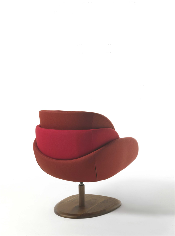 Кресло вращается и имеет автоматический возврат, что обеспечивает удобство использования. Основание выполнено из массива ореха каналетта, а обивка доступна в различных тканях коллекции, позволяя адаптировать изделие под ваш интерьер.