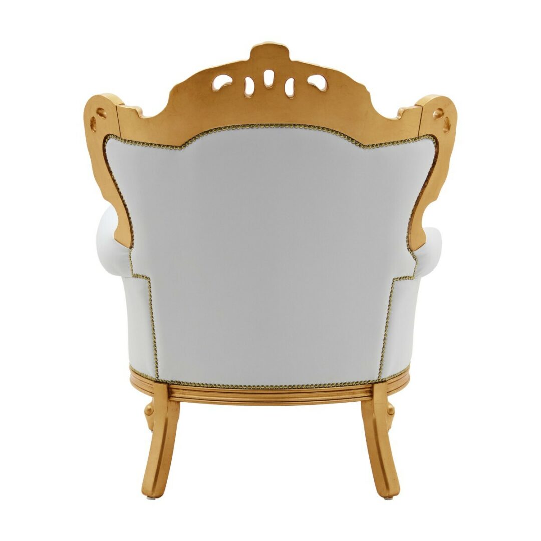 Кресло обтянуто высококачественной белой кожаной обивкой, что добавляет ему нотку элегантности и утонченности. Драгоценная отделка из сусального золота придает креслу особый шик и роскошь. Эта модель, украшенная такими материалами, была даже представлена на коронации Ролен Штраус, Мисс Мира 2014, что подтверждает её исключительный статус.