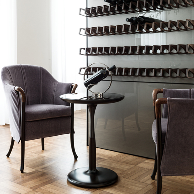Изготовленное из массива бука и подлокотников из дерева pau ferro, это кресло обеспечивает долговечность и элегантность. Съемная тканевая или кожаная обивка позволяет легко адаптировать его под ваш интерьер.