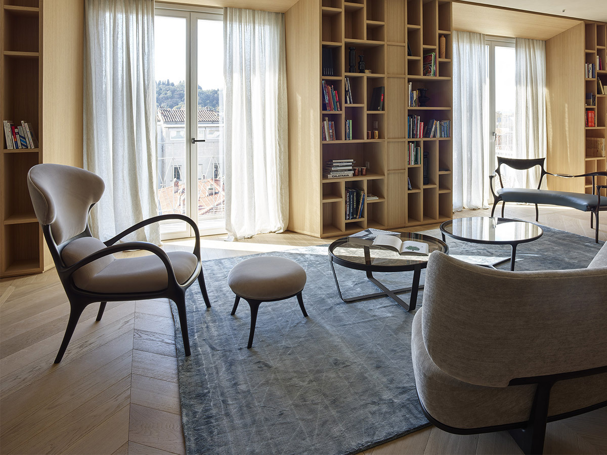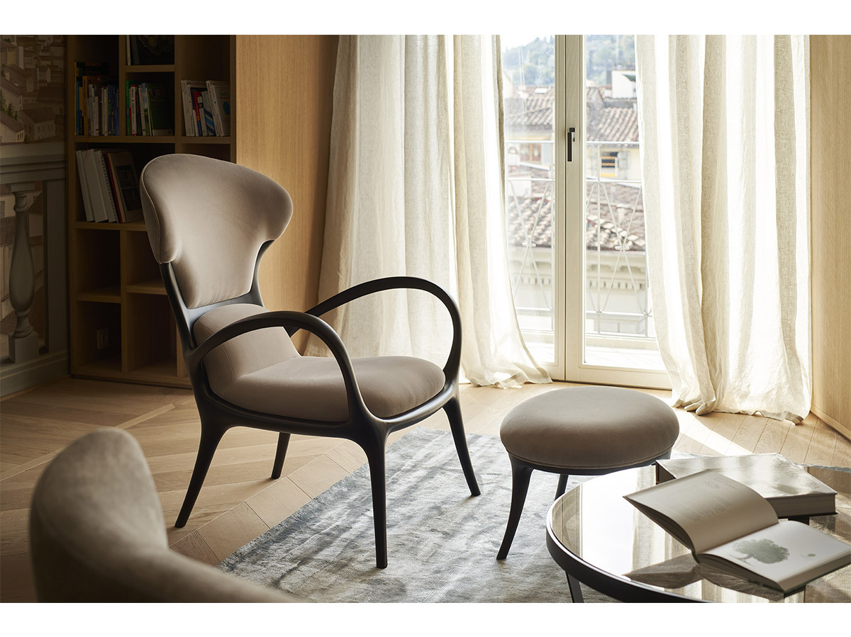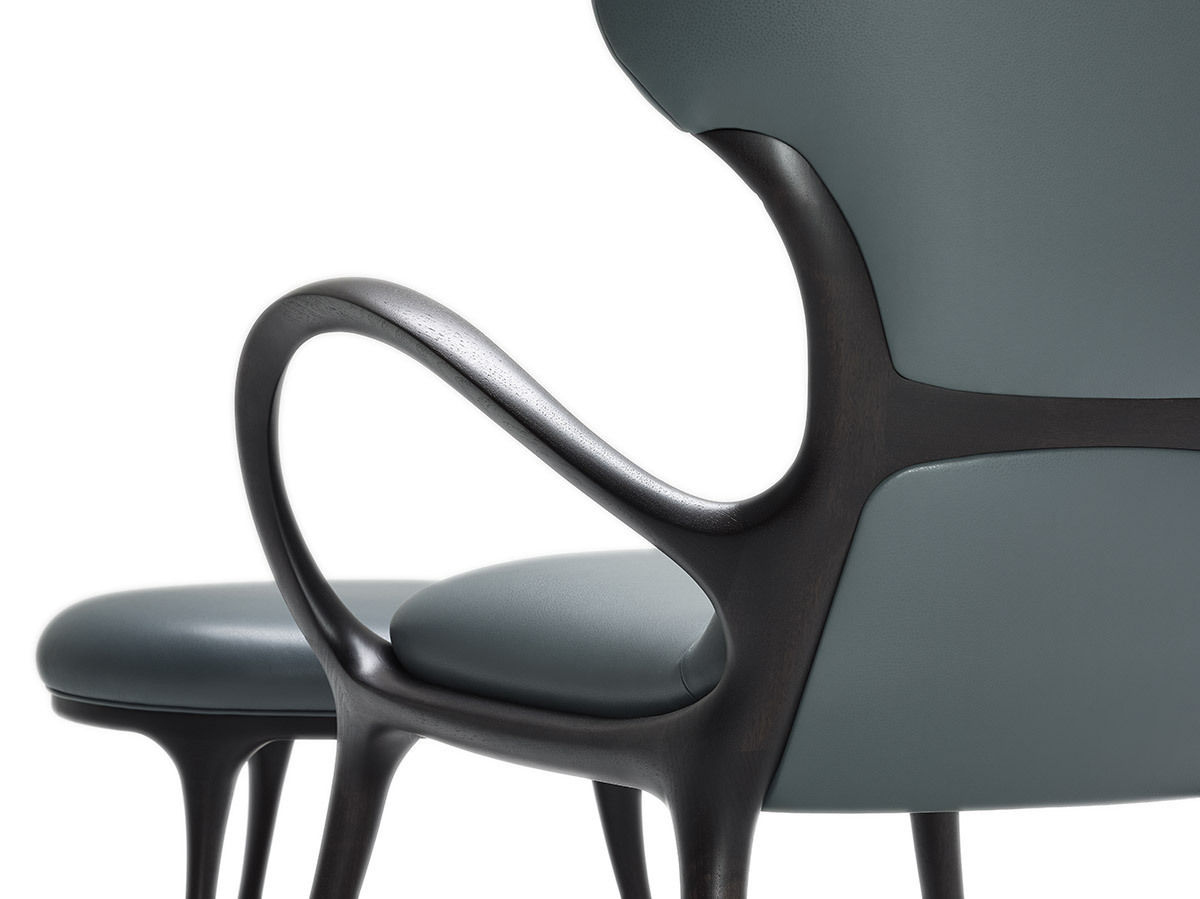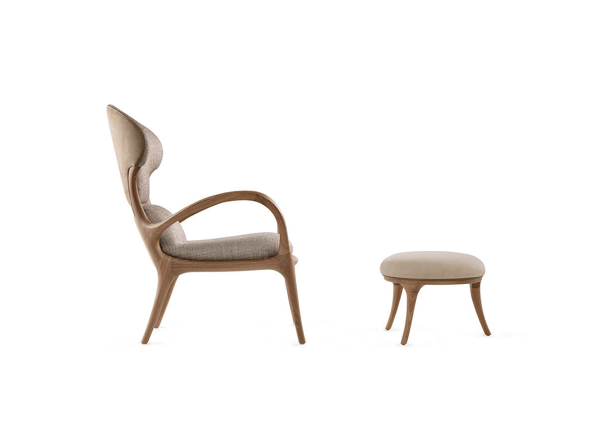 Кресло SATURN выполнено из цельного американского ореха, что придает ему не только прочность, но и уникальный визуальный шарм. Каждый элемент этого кресла, от изогнутой фанеры сиденья до обивки, тщательно продуман и выполнен вручную. Дизайнеры CECCOTTICOLLEZIONI создали сбалансированную форму, которая гармонично вписывается в любые интерьеры — от классических до современных.