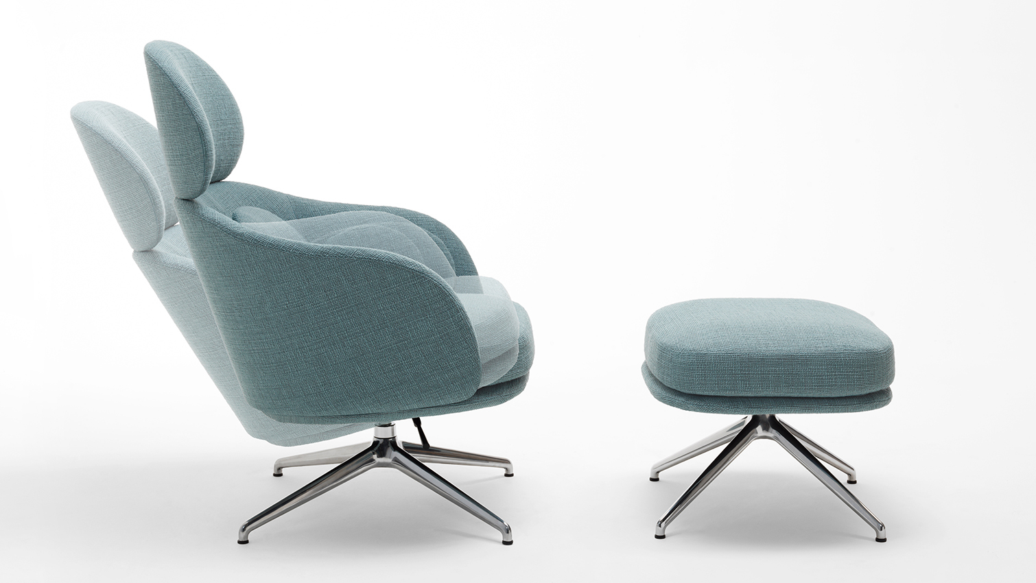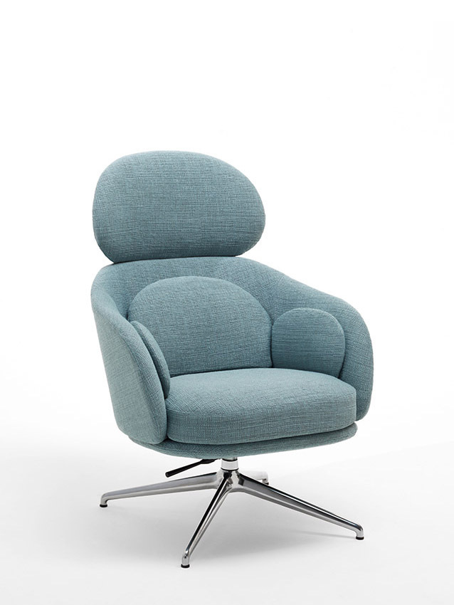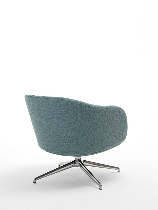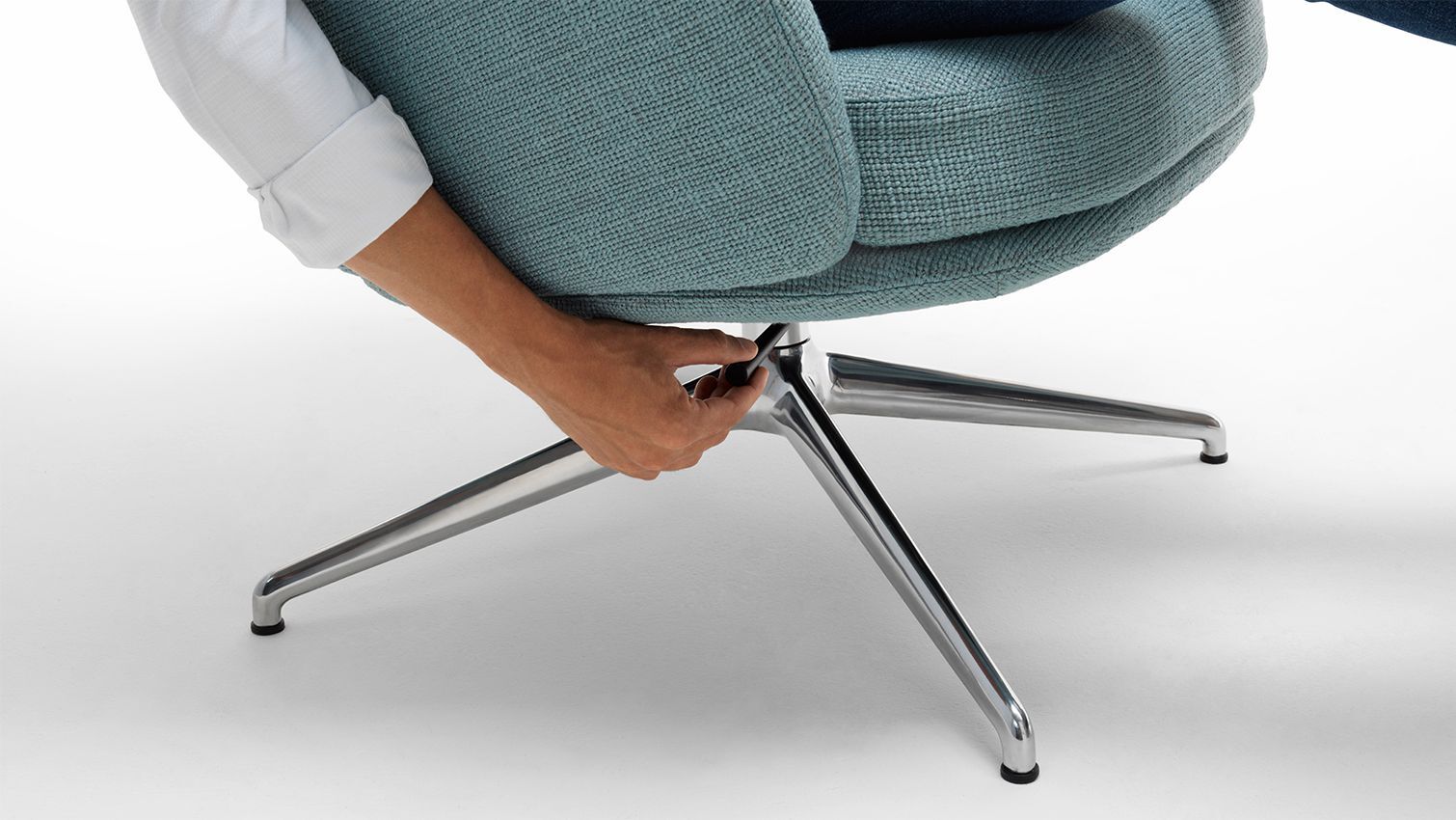 Оснащено механизмом откидывания (в версии с подголовником) и поворотным основанием в форме звезды из алюминия. Доступно в различных вариантах обивки со съемными чехлами. Идеальный баланс комфорта, качества итальянского производства и современной эстетики.