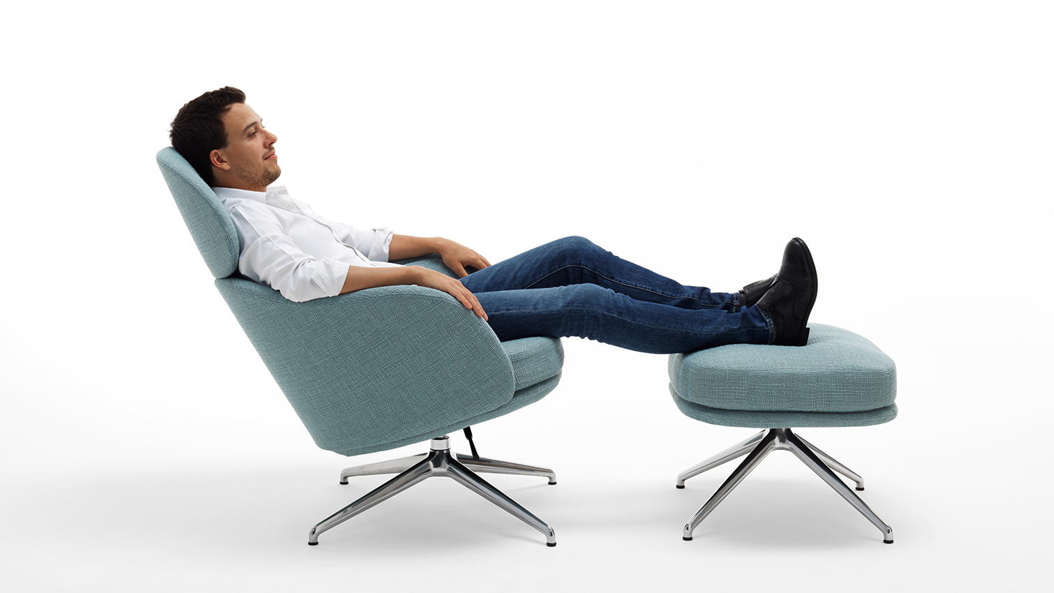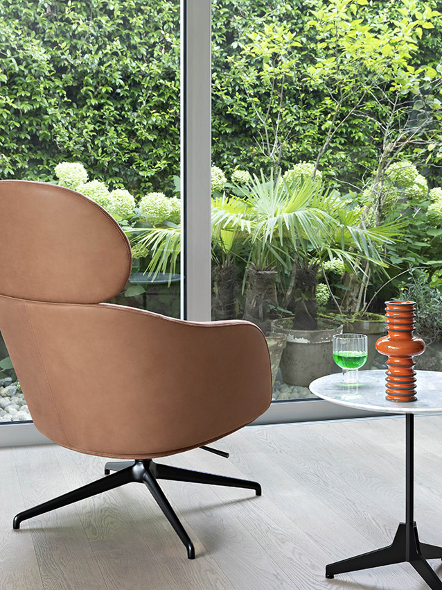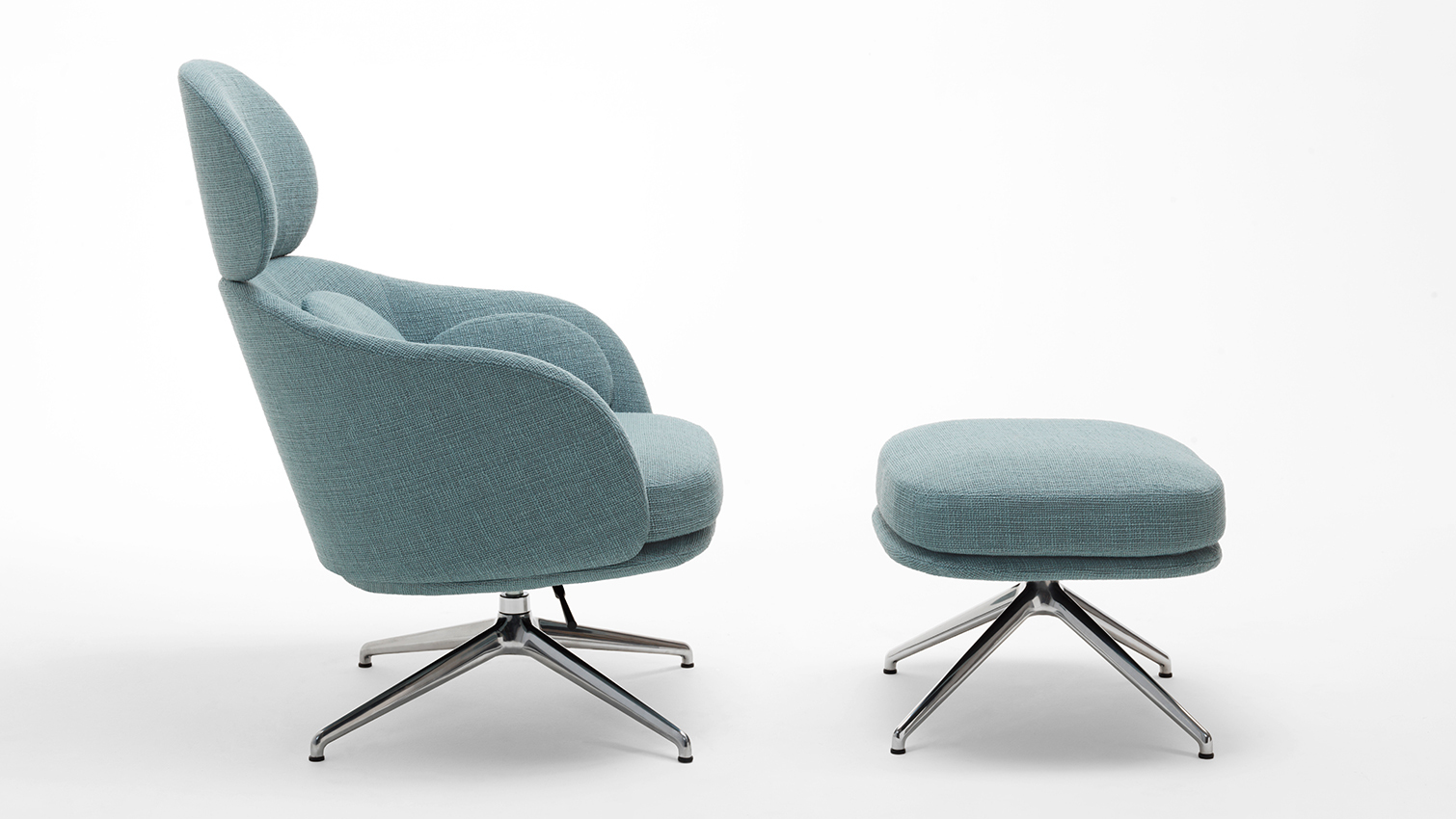 Оснащено механизмом откидывания (в версии с подголовником) и поворотным основанием в форме звезды из алюминия. Доступно в различных вариантах обивки со съемными чехлами. Идеальный баланс комфорта, качества итальянского производства и современной эстетики.