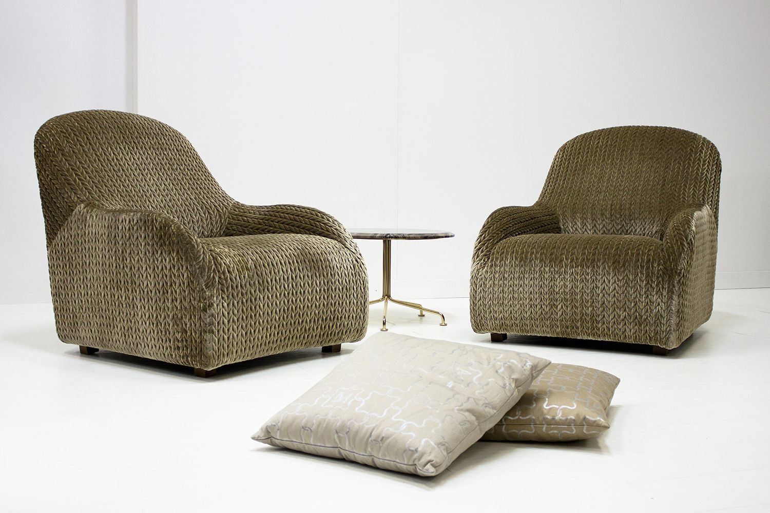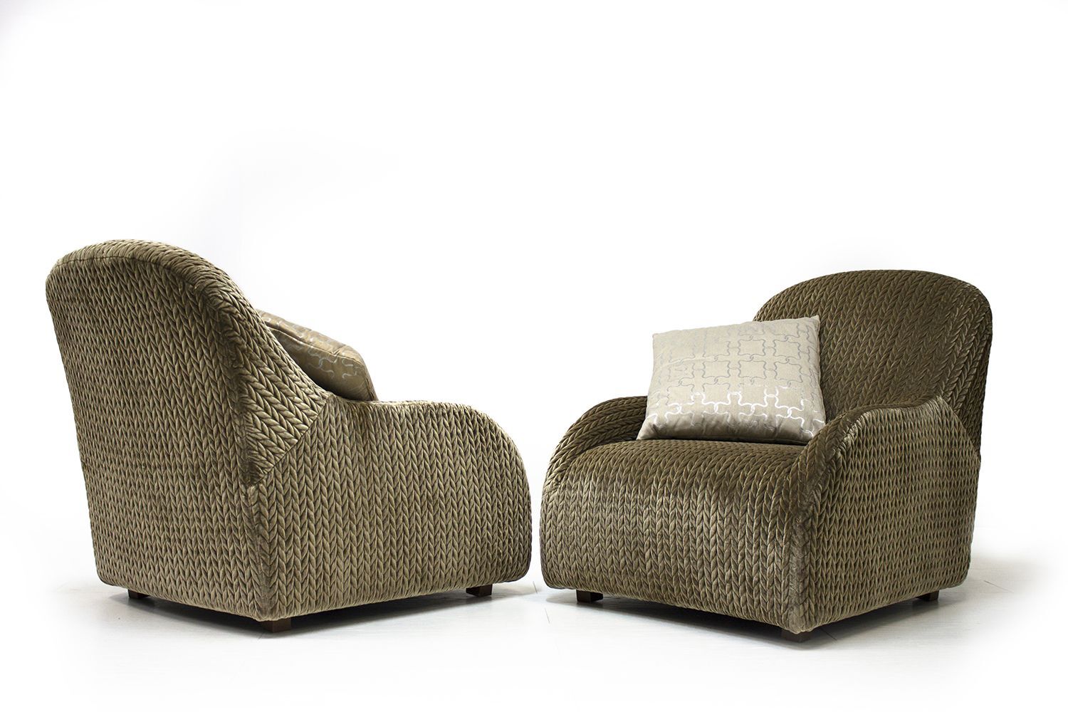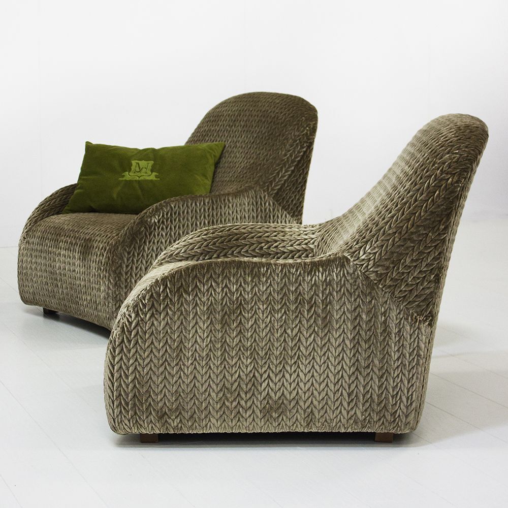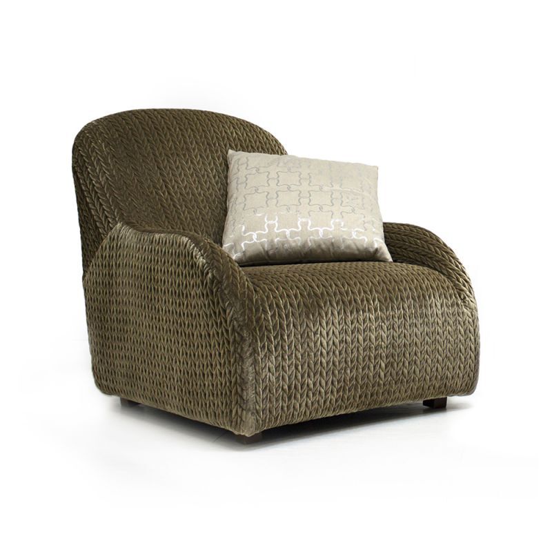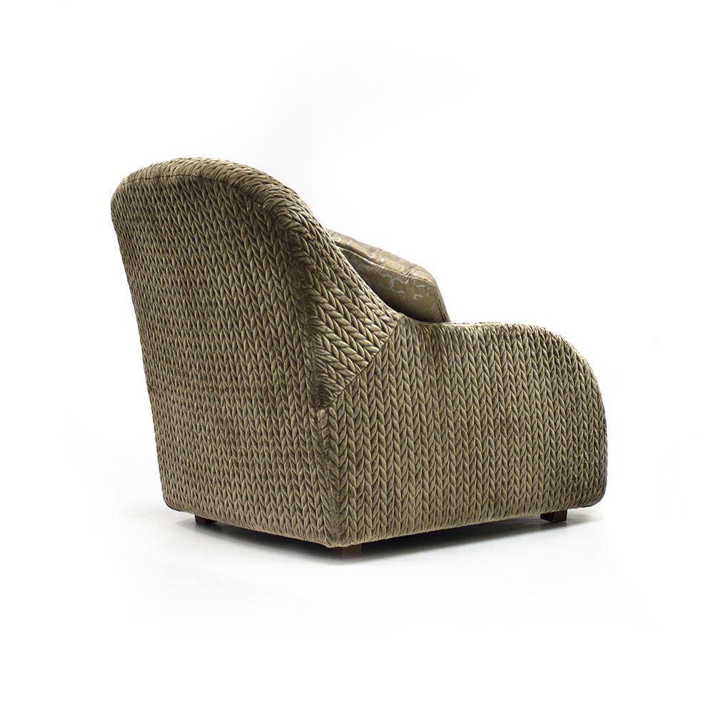 Кресло VICTORIA от итальянской фабрики FORMITALIA – воплощение роскоши и комфорта. Модель выполнена в набивном бархате с изысканным принтом LE 023, а подушка (60×40 см) – из бархата LE 035. Размеры: 80×80×90 см.