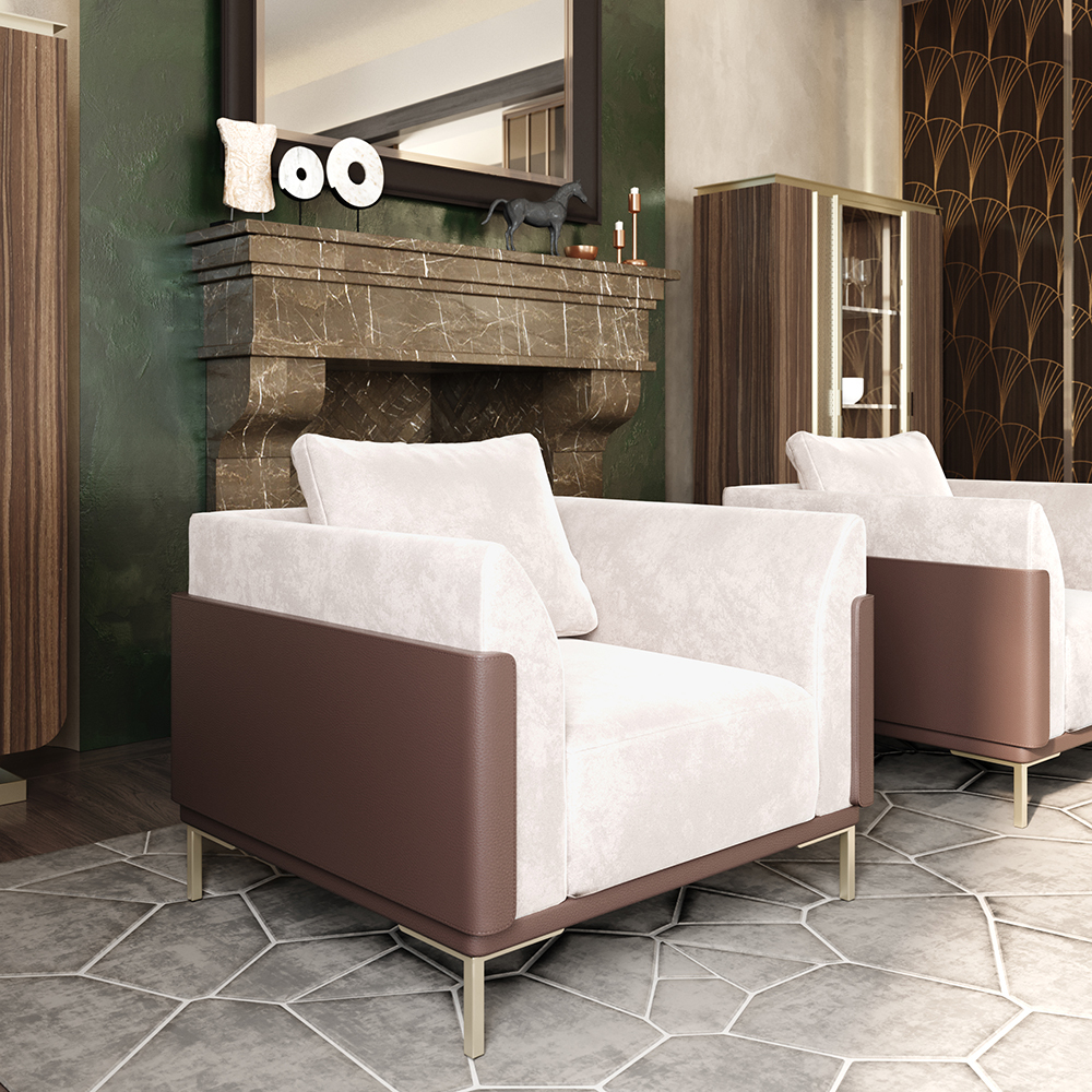 Кресло Vittoria — это не просто мебель, а настоящее произведение искусства. Его изящные линии и гладкие формы привлекают внимание и создают ощущение престижности. Сиденье и спинка обиты мягкой тканью или кожей, что обеспечивает невероятный комфорт, а корпус, обитый кожей снаружи, добавляет нотки утончённости. Декоративная подушка из ткани, выполненная с тон-в-тон швами, подчеркивает аккуратность и внимание к деталям, которые так важны в итальянской мебели.