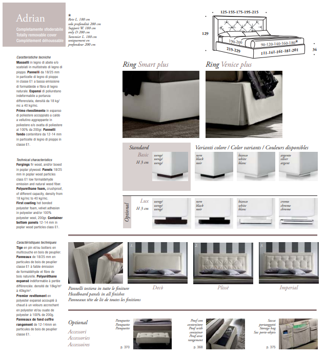 Изготавливаемая в Италии, кровать Adrian использует только благородные материалы, обеспечивая долговечность и надежность. Каркас выполнен из прочного и качественного дерева, что гарантирует устойчивость и долговечность. Мягкая обивка доступна в различных текстурах и цветах, что позволяет вам персонализировать кровать в соответствии с вашими предпочтениями. Выбор обивки не только добавляет уют, но и подчеркивает статусность вашей спальни.