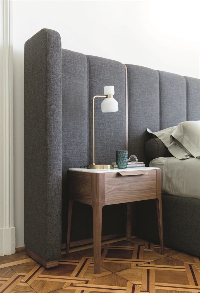 Кровать Aida изготовлена из высококачественных материалов, что обеспечивает не только эстетическую привлекательность, но и долговечность. Итальянский орех каналетта, известный своей прочностью и красивой текстурой, придает мебели уникальный шарм. Использование мягких тканей для обивки обеспечивает комфорт, превращая каждую ночь в истинное наслаждение.