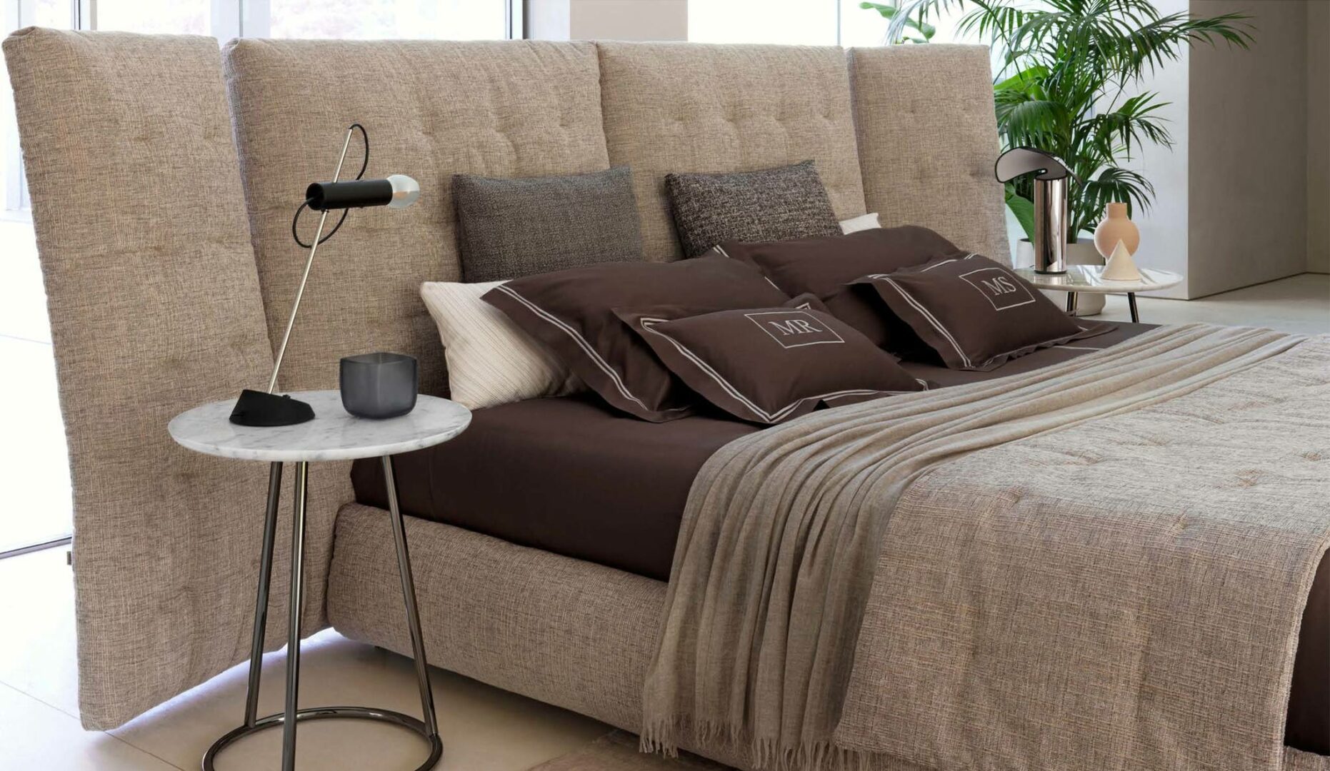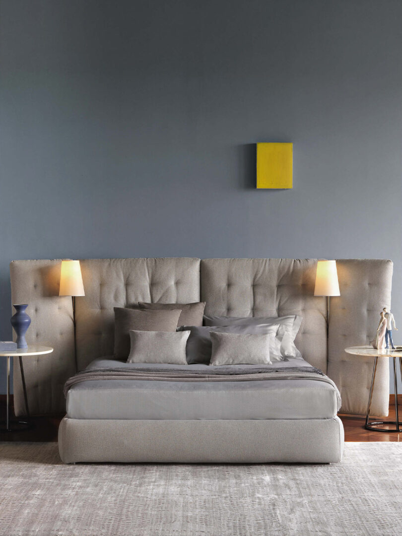 Откройте для себя кровать Angle от итальянской фабрики Flou — идеальное сочетание роскоши и комфорта. Высокое изголовье с мягкой стеганой отделкой капитоне и боковые панели-ширмы создают атмосферу уюта и интимности. Уникальный авторский дизайн позволяет легко разместить прикроватные тумбочки, подчеркивая функциональность.