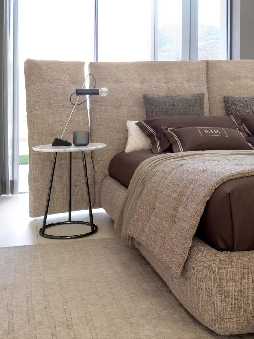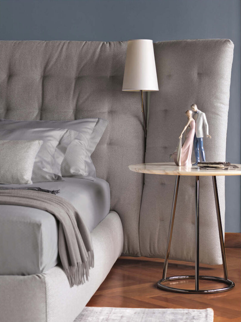 Высокое изголовье, мягкая стеганая отделка капитоне и боковые панели-ширмы делают кровать Angle изысканной и интимной. Этот авторский дизайн, вдохновленный итальянскими традициями, создает атмосферу уюта и респектабельности. Две боковые панели открываются и закрываются по желанию, что позволяет легко разместить прикроватные тумбочки или служебные столики, обеспечивая не только стиль, но и функциональность.