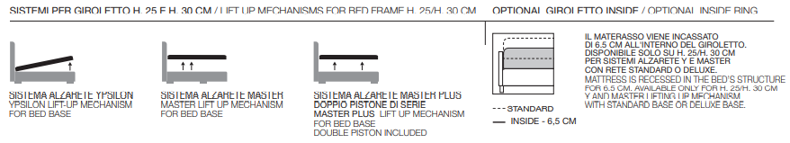 Кровать изготовлена из высококачественных материалов, что подчеркивает ее статус. Структура с жестким основанием обеспечивает долговечность и комфорт, в то время как возможность опускания решетки на 65 см позволяет легко настроить высоту матраса, подстраиваясь под ваши предпочтения. Это делает APOLLO универсальным решением для любого интерьера, создавать уют и благородство.