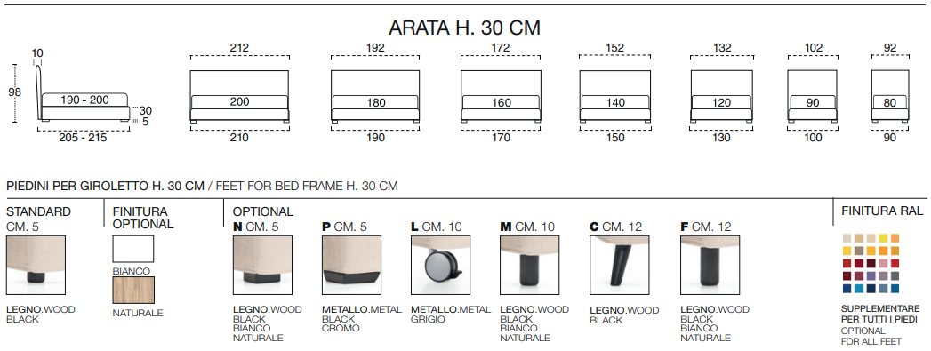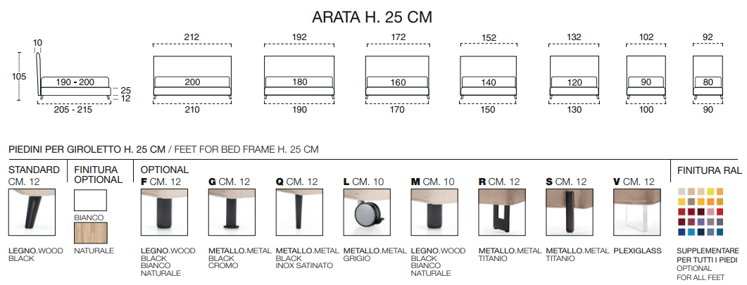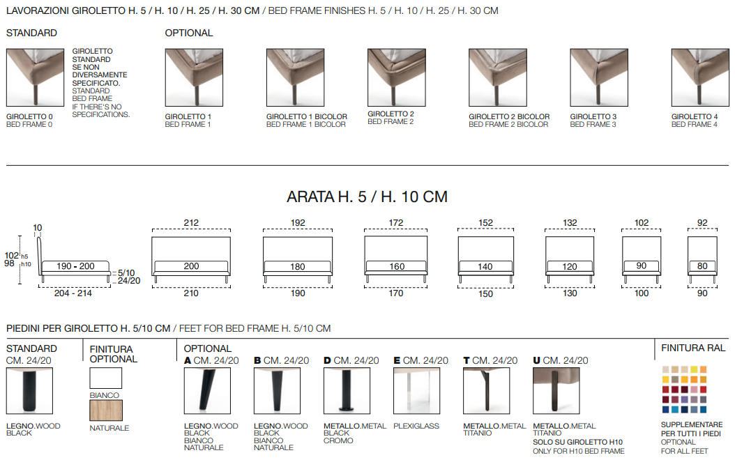 Кровать ARATA изготовлена из высококачественных материалов, что подчеркивает ее статусность и долговечность. Каждый компонент, от каркаса до обивки, выполнен с использованием лучших итальянских тканей и фурнитуры. Дополнительный чехол из гигиенической сетки и мешок для пыли обеспечивают максимальную защиту вашего матраса, гарантируя гигиеничность и долговечность.