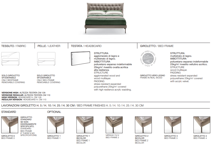 При создании кровати ARTEMIDE использованы только высококачественные материалы, соответствующие итальянским традициям. Роскошная обивка, натуральное дерево и продуманные детали обеспечивают не только визуальное наслаждение, но и долговечность. Каждый элемент изготовлен вручную, что подчеркивает эксклюзивность и уникальность данного изделия. Вы можете также выбрать индивидуальную обивку, что делает ARTEMIDE идеальным вариантом для вашего интерьера.