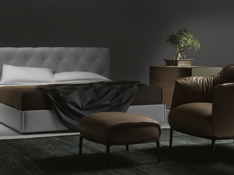 Кровать Bluemoon от известной итальянской фабрики Poltrona Frau – это воплощение стиля и функциональности. Изголовье выполнено из тополя и буковой фанеры с мягкой набивкой, обеспечивая комфорт и поддержку. Основание из еловой столярной плиты гарантирует прочность, а вместительный шкаф для хранения с газовыми пружинами делает использование удобным. Цилиндрические алюминиевые ножки придают кровати уникальный вид.