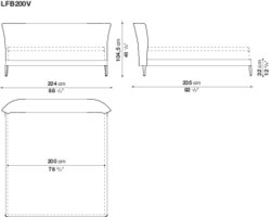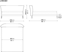 Кровать доступна в размерах ЛФБ160В, ЛФБ180В, ЛФБ200В и ЛФБ153В.