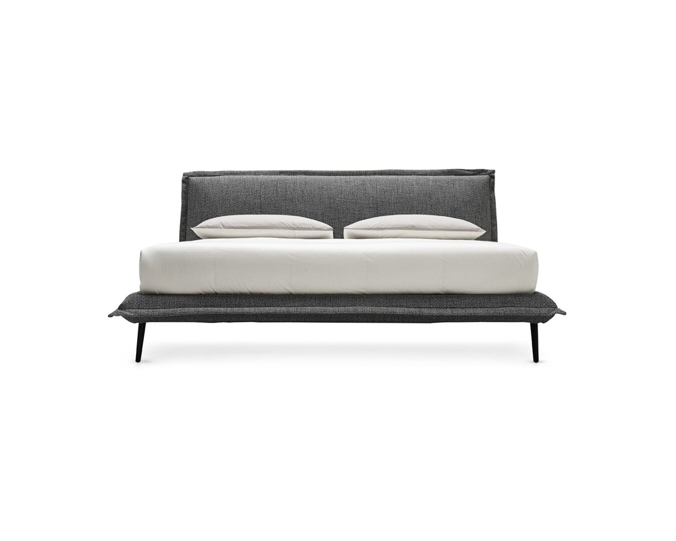 Модель создает эффект парящего матраса благодаря тонким металлическим ножкам и прочной конструкции. Тканевая кайма по периметру добавляет изысканности, демонстрируя безупречное качество исполнения.