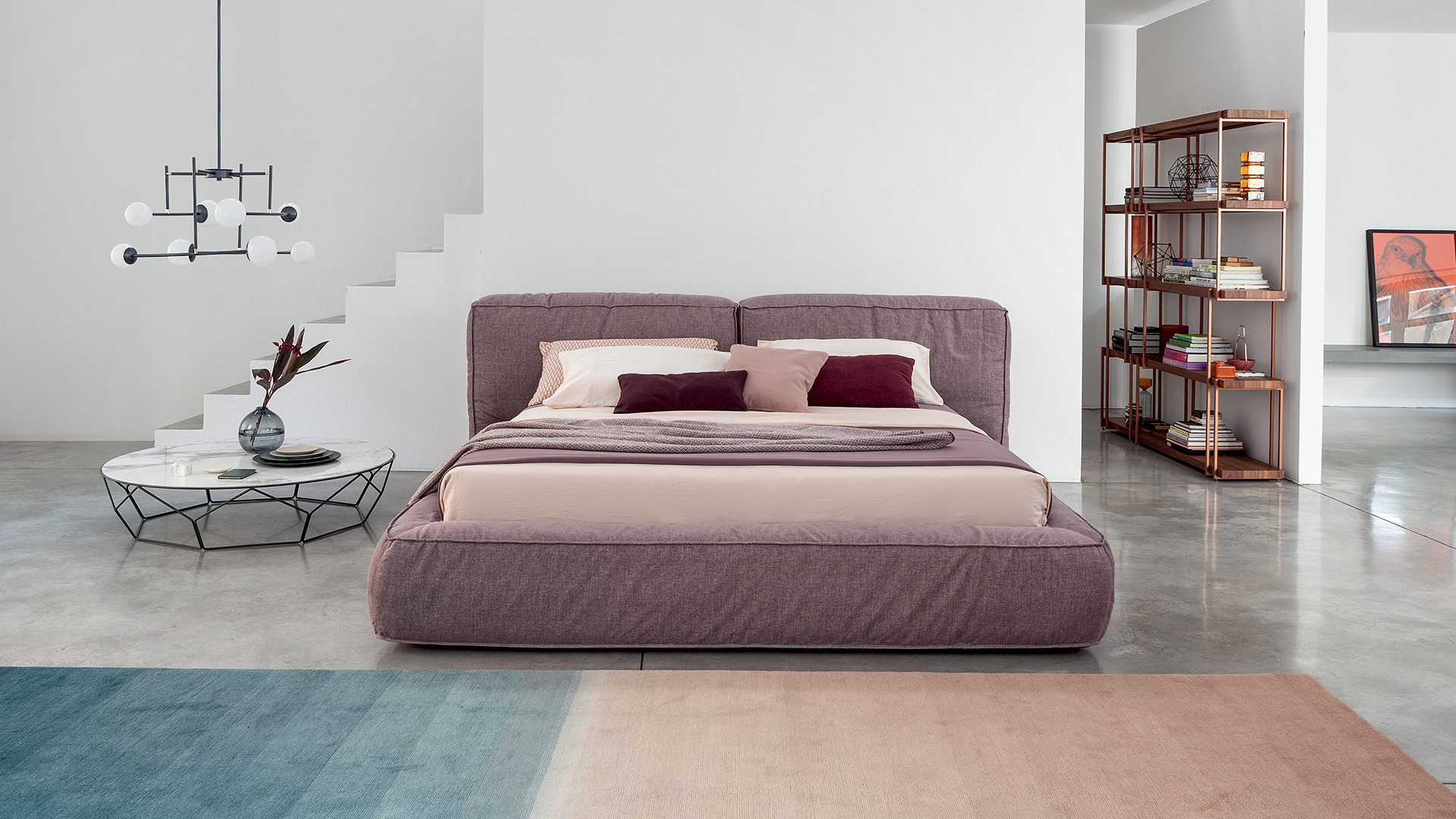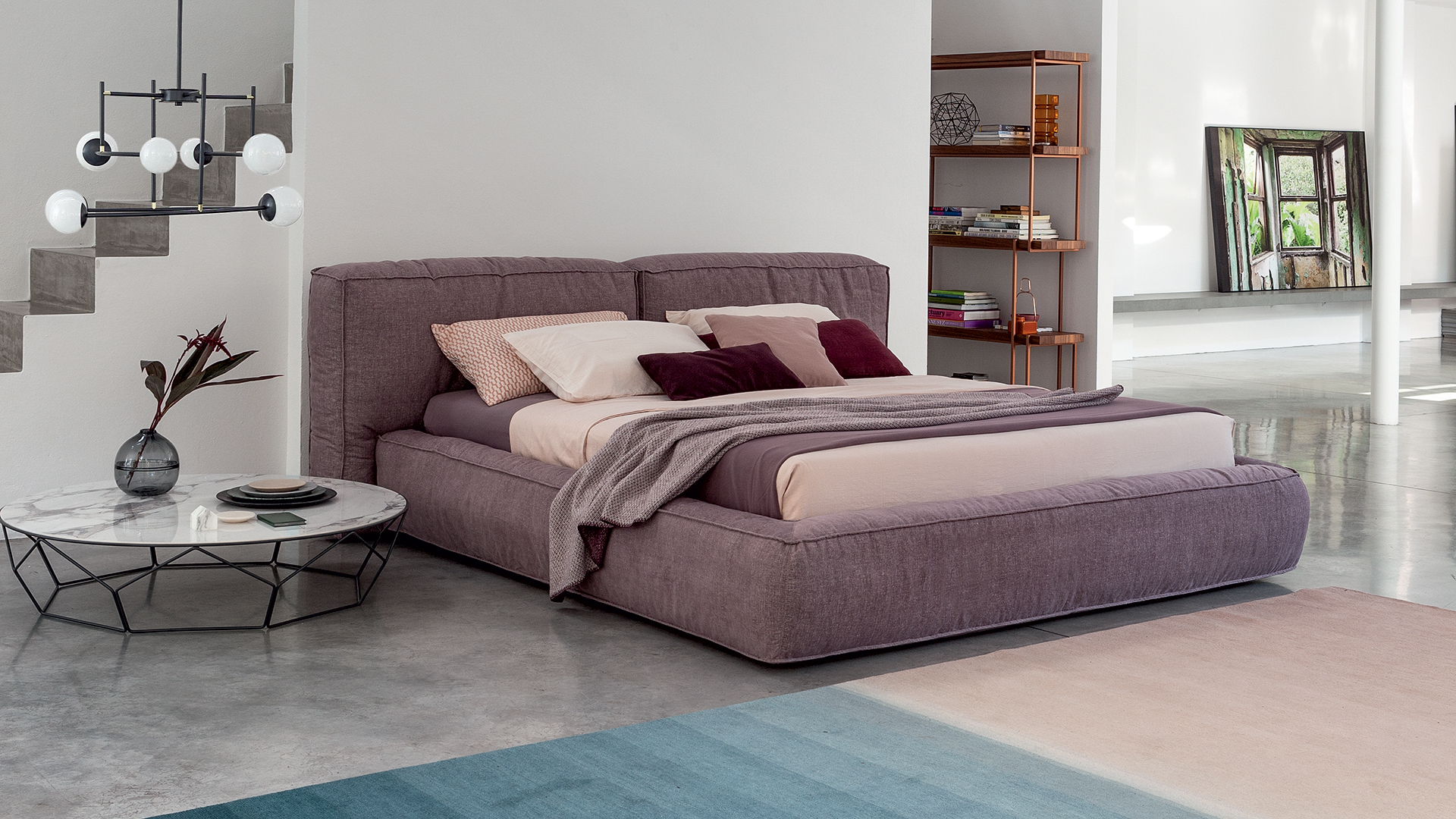 Кровать FLUFF — это больше, чем место для сна; это арт-объект, задающий тон всему пространству. Представьте, как мягкое свечение бра подсвечивает ее изголовье, а шелковистая обивка контрастирует с грубым фактурам паркета или ковра ручной работы. Она идеально дополнит: