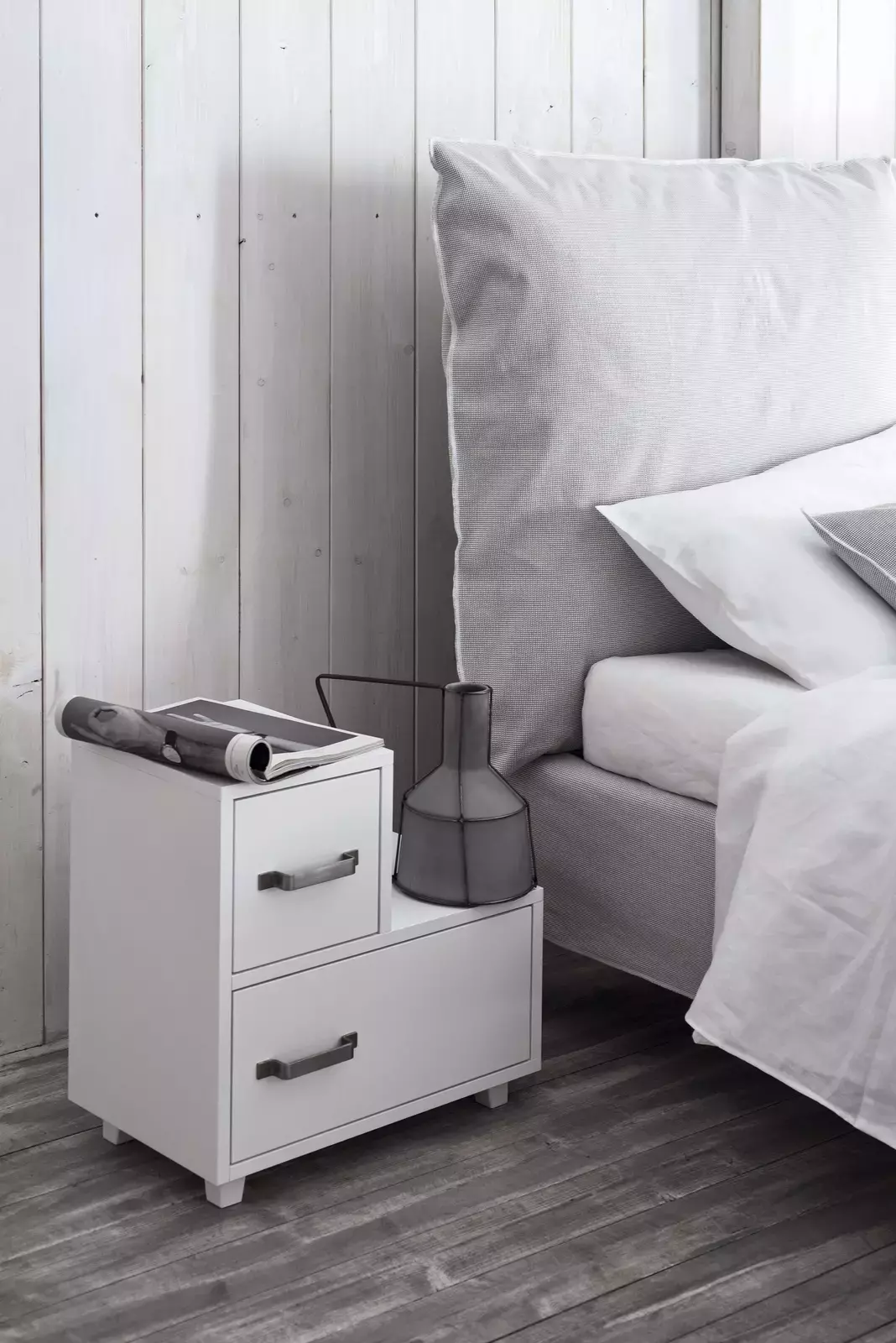 Доступна в цветах: натуральный орех, черный, белый, серый, океанский и голубовато-серый. Итальянское качество и продуманный дизайн делают эту кровать стильным выбором для спальни.