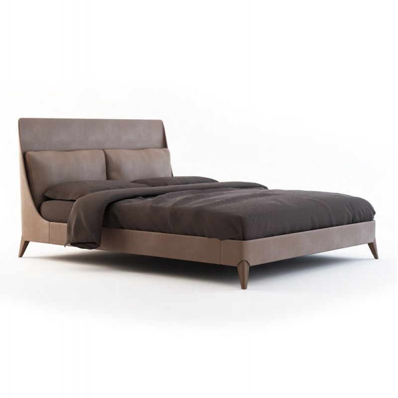 Кровать FUTURA от итальянской фабрики FORMITALIA – воплощение элегантности и комфорта. Модель представлена в двух вариантах: с обивкой из кожи Newskin цвета 1616 и ножками из массива ореха Каналетто или в коже набуке оттенка какао с ясеневыми ножками в черном цвете.