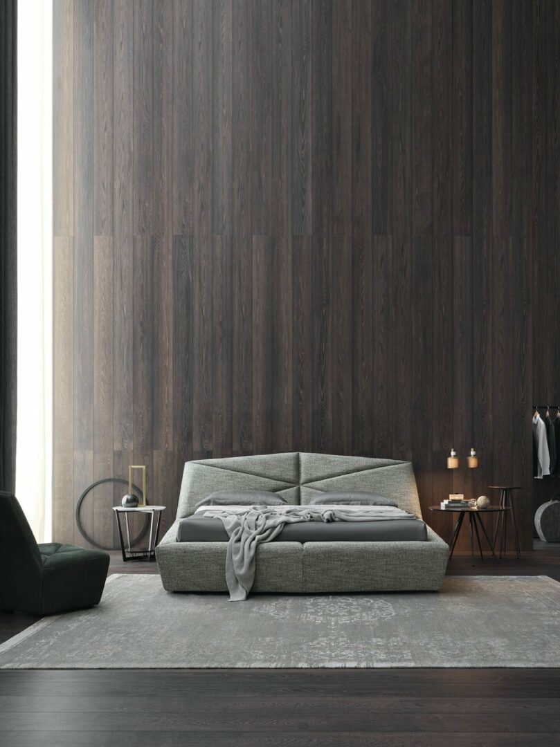 Дизайн изголовья кровати Gossip напоминает оригами, восточное искусство, которое требует мастерства и точности. Каждая деталь проработана до мелочей, что делает эту кровать не только функциональной, но и настоящим произведением искусства. Щедрая и смелая обивка придает оригинальный вид, а плавные линии создают атмосферу уюта и стиля.