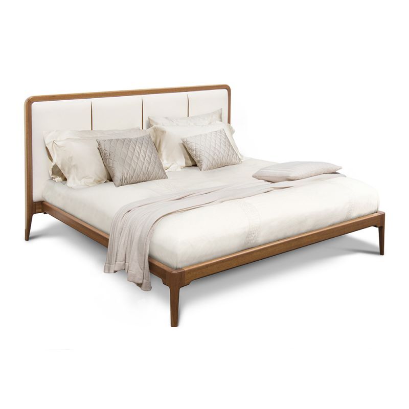 Кровать JULIA от итальянской фабрики FORMITALIA — воплощение роскоши и элегантности. Изголовье выполнено из матовой древесины красного дерева с вставками из кожи Daino в оттенках молочного и виски, украшенными аккуратной строчкой. В комплекте — сатиновое постельное бельё с вышивкой, подчеркивающее статусность модели.