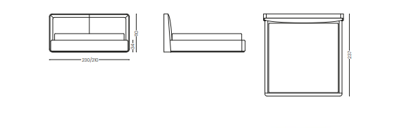 Размеры: 200 см (230×237×110h) или 180 см (210×237×110h). Для уточнения деталей свяжитесь с менеджером по телефону +7 (495) 369-17-36.