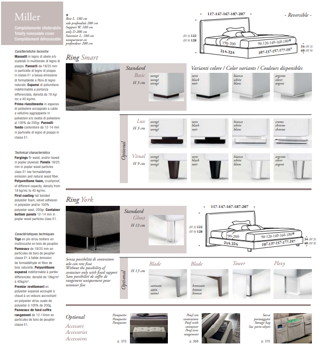 Кровать Miller отличается элегантным и современным дизайном, который легко впишется в любые стилистические решения. Высокий ринг, декорированный рельефной строчкой, создает визуальный акцент, а изящные ножки из оргстекла придают легкость и воздушность. Версия с низким рингом предлагает более строгий и минималистичный вид, идеально подходящий для тех, кто ценит чистые линии и простоту.