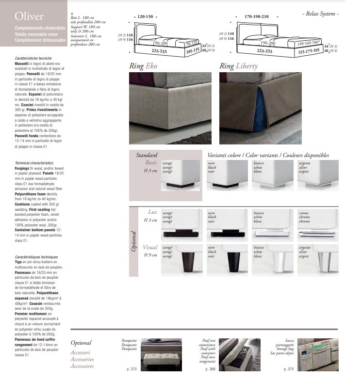 Кровать Oliver изготовлена из высококачественных материалов, которые обеспечивают долговечность и надежность. Мягкие подушки изготавливаются с использованием инновационных технологий, что делает их не только визуально привлекательными, но и невероятно удобными. Итальянские традиции ручной работы гарантируют, что каждый элемент кровати тщательно продуман и исполнен с любовью к деталям.