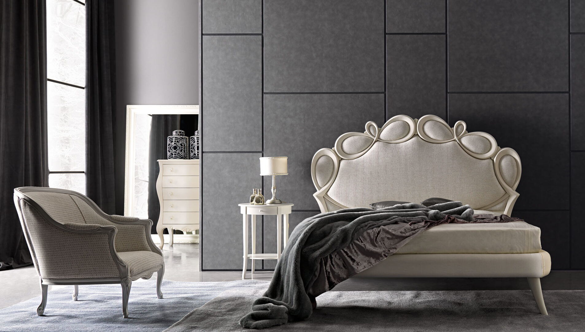 Кровать Papillon отличается авторским дизайном, в котором сочетаются современные тенденции и классические итальянские традиции. Мягкие изгибы, продуманные пропорции и детализация создают ощущение легкости и изящества. Модель доступна в двух размерах — 200×199 см и 215×209 см, что позволяет идеально вписать ее как в просторные апартаменты, так и в уютные спальни.