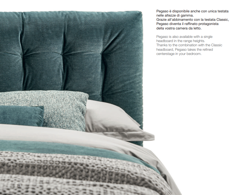 Кровать PEGASO легко впишется в различные стили интерьера — от классического до современного. Она станет центром вашего пространства и вызовет восхищение у гостей. Представьте, как уютно и спокойно будет выглядеть ваш вечерний ритуал на этом великолепном творении, а утреннее пробуждение будет наполнено энергией и комфортом.