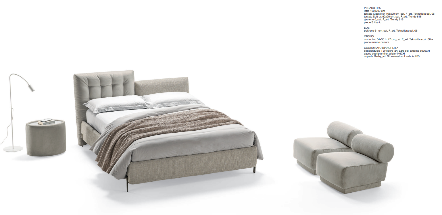 Кровать PEGASO сочетает в себе высококачественные материалы и современный подход к дизайну. Использование отборного дерева и премиальных текстильных покрытий гарантирует долговечность и стиль. Эта модель идеально впишется в любой интерьер, становясь его центром.
