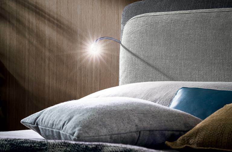 Кровать Penny оснащена удобным аксессуаром — регулируемой светодиодной лампой, встроенной в изголовье. Это решение не только стильно, но и практично. Управление лампой осуществляется с помощью простого прикосновения, что делает использование кровати максимально комфортным.