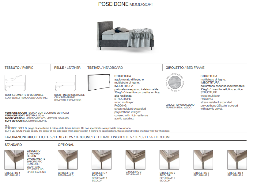 Выбор в пользу кровати POSEIDONE — это выбор в пользу качества, комфорта и стиля. Ваша спальня станет отражением вашего статуса и вкуса, подчеркивая вашу приверженность к итальянской культуре и традициям. Подчеркните свою уникальность и создайте идеальный стиль в вашем доме, выбрав эту премиум-класс мебель.