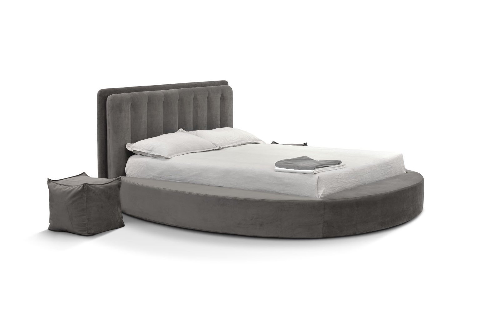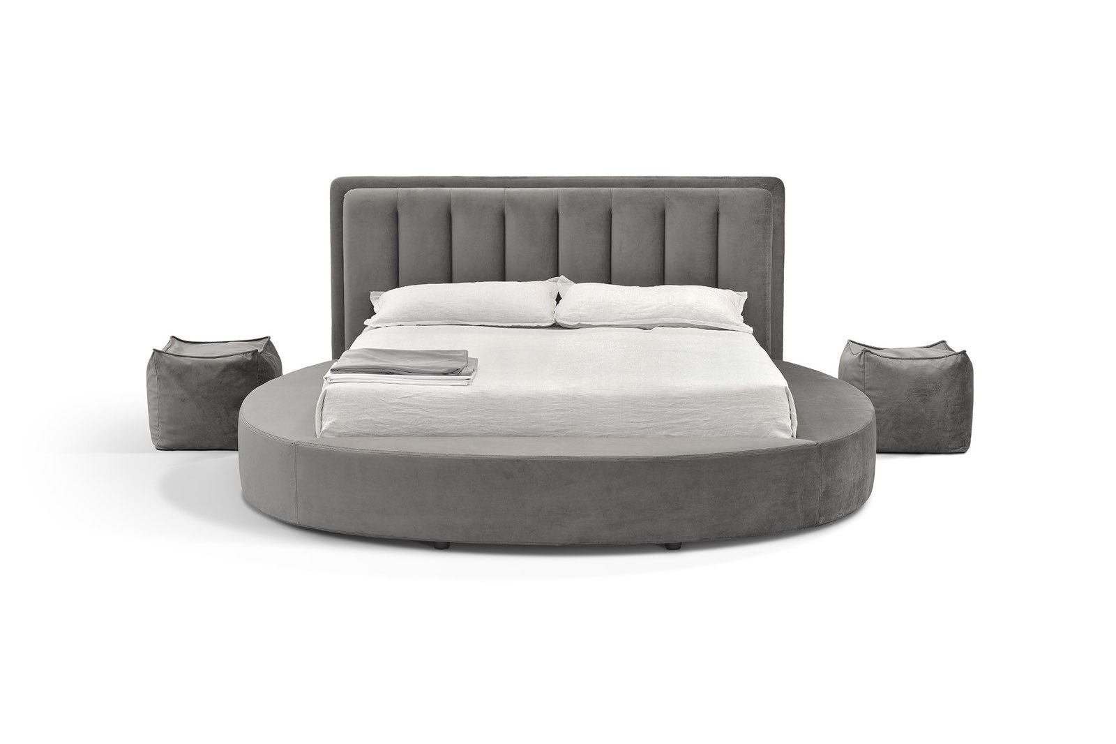 Итальянская кровать Roy GT GF от фабрики NOVALUNA — воплощение элегантности и комфорта. Мягкие линии изголовья с глубокими вертикальными канавками создают утончённый дизайн, а опциональная светодиодная подсветка добавляет современный штрих. Основание с круговой конструкцией обеспечивает надёжность и устойчивость.