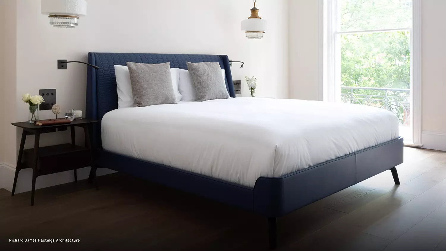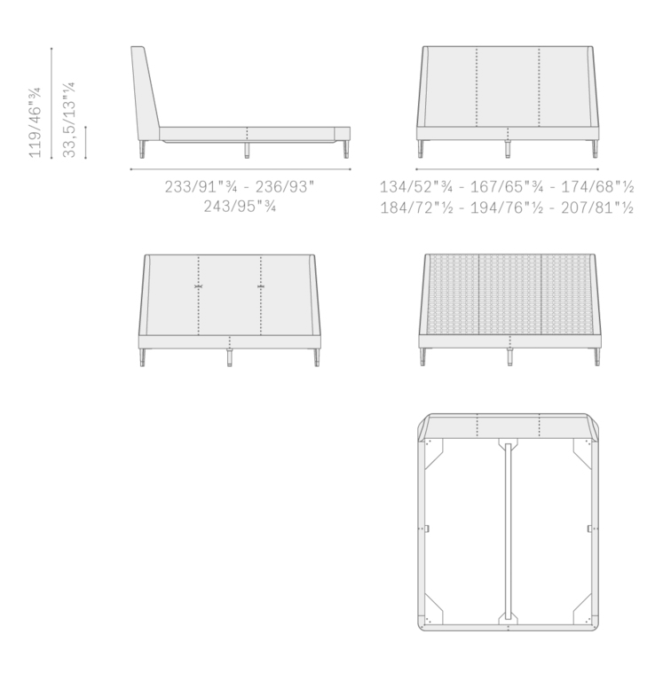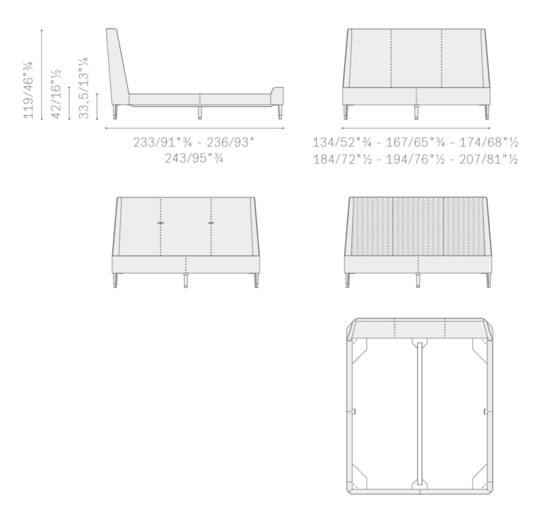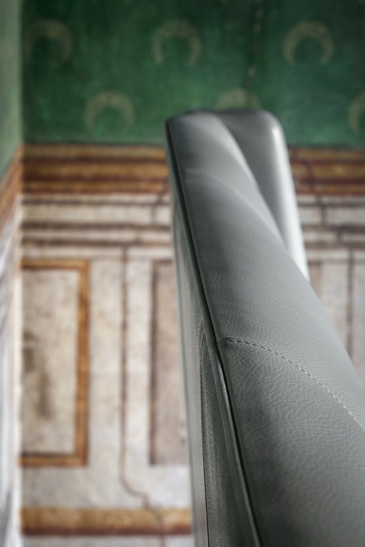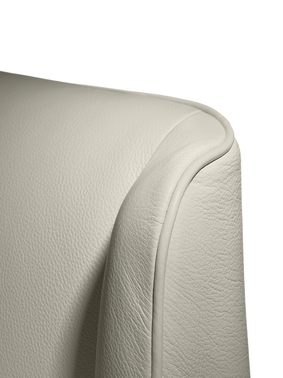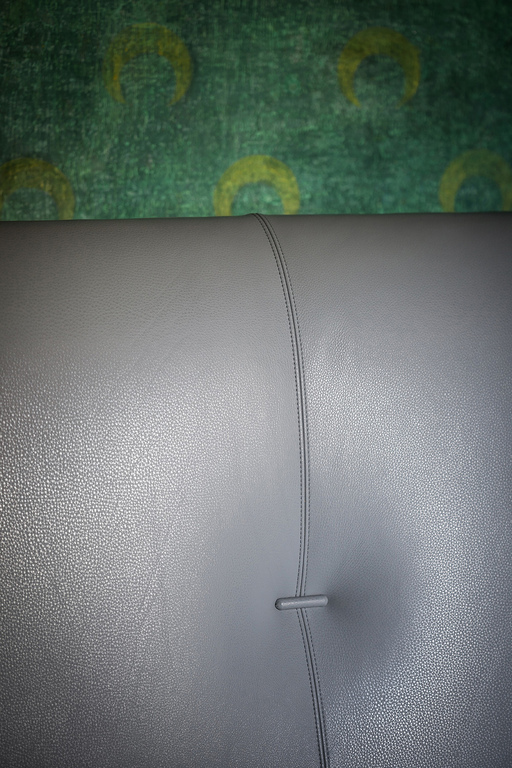 Кровать изготовлена из массива буковой и березовой фанеры, а обивка выполнена из кожи Pelle Frau® — символа итальянского качества. Использование пенополиуретана обеспечивает не только комфорт, но и долговечность. Конические ножки, обтянутые кожей или выполненные из твердого ясеня, добавляют изящества и практичности.
