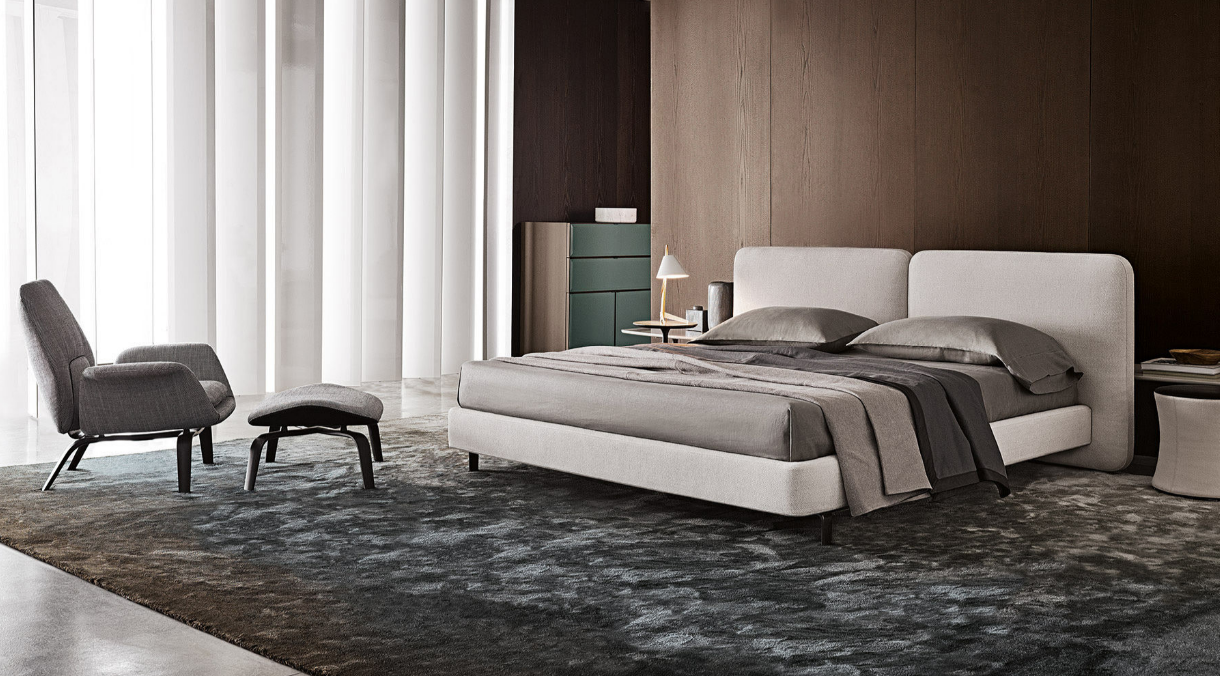 Кровать Tatlin-Cover Minotti отличается скульптурной выразительностью, где каждая деталь продумана до мелочей. Мягкие, обтекаемые формы изголовья создают ощущение защищенности, а лаконичные пропорции подчеркивают современную эстетику. Дизайн вдохновлен архитектурными тенденциями, что делает модель универсальной — она органично впишется как в классические, так и в авангардные интерьеры.