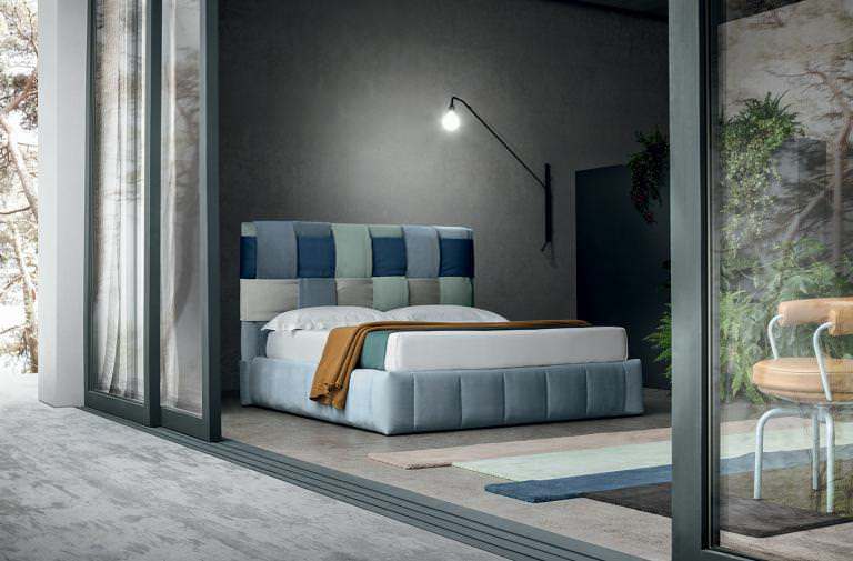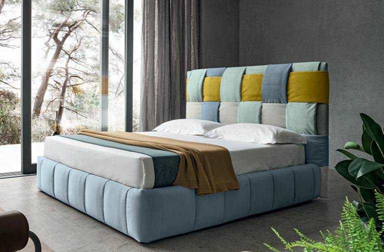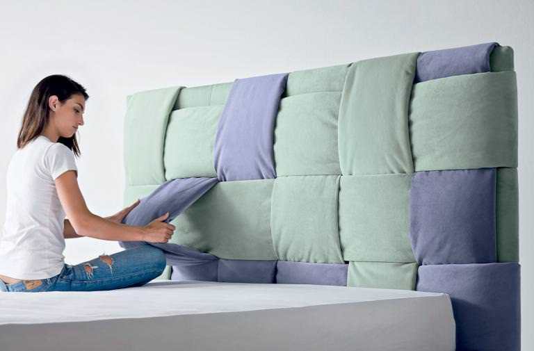 Изголовье кровати оформлено девятью полосами мягкой ткани, которые переплетаются в красочную сетку. Это дает вам возможность экспериментировать с цветами и текстурами, создавая индивидуальную атмосферу в спальне.