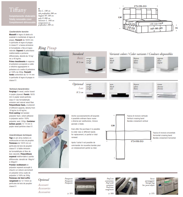 Кровать Tiffany привлекает внимание благодаря своему изысканному изголовью, в котором девять полос мягкой ткани переплетаются в красочную сетку, создавая эффект многослойности и текстурного разнообразия. Это не просто мебель — это возможность выразить себя и свои предпочтения. Выбор тканей для обивки позволяет вам создать уникальную композицию, которая будет гармонировать с общим стилем вашего интерьера.