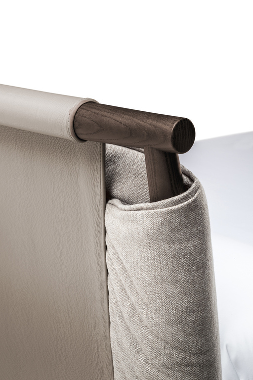 Изголовье кровати Times представляет собой запоминающееся сочетание высококачественной кожи, дерева и тканей, выбранных по желанию клиента. Конструкция из массива ясеня, выполненная с идеальной точностью, создает чистые линии, подчеркивающие элегантность и утонченность. Вертикальные полосы кожи Pelle Frau® пересекают горизонтальную подушку, создавая эффектный контраст между твердыми и мягкими элементами. Это не просто кровать, а настоящая симфония форм, которая привносит в ваш интерьер гармонию и спокойствие.