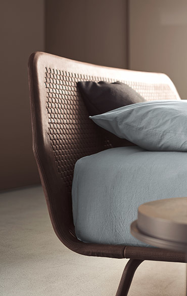 Итальянская кровать Trama Intreccio от фабрики Pianca — воплощение роскоши и мастерства. Изголовье обито вручную плетёной кожей с тонкой ортогональной фактурой, создающей выразительный визуальный эффект. Безупречные швы подчёркивают качество материалов и внимание к деталям.