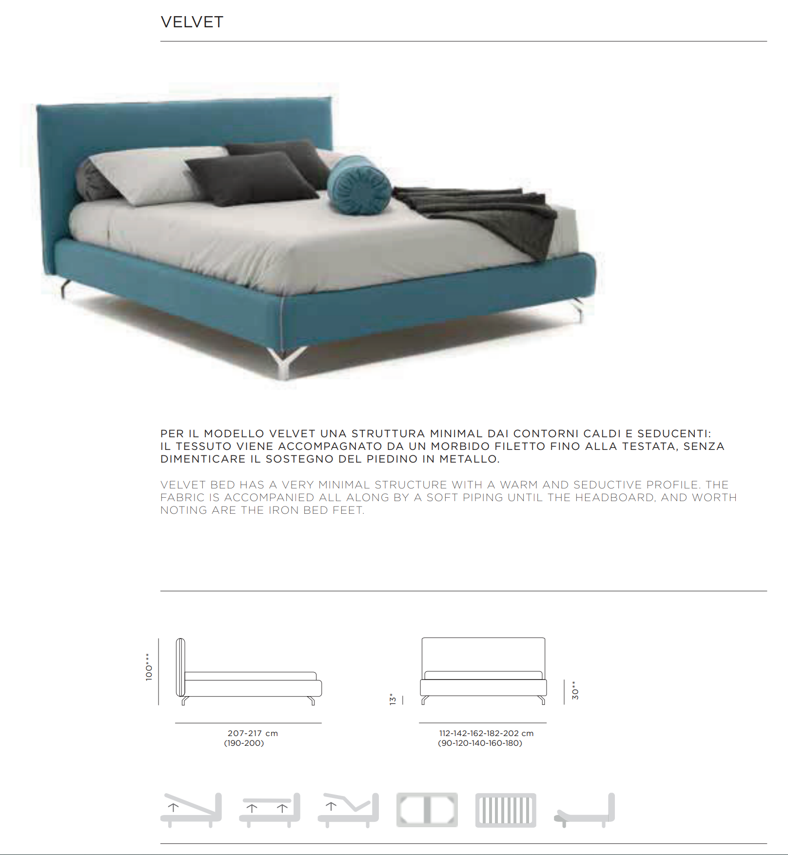 Каждая кровать Velvet создается вручную мастерами фабрики Rimar, что делает ее по-настоящему уникальной. Итальянские технологические стандарты гарантируют: