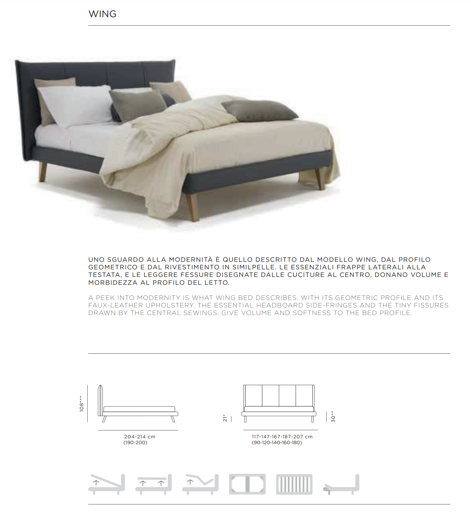 Итальянская кровать Wing от фабрики Rimar — воплощение элегантности и комфорта. Изготовлена в Италии с безупречным вниманием к деталям, что гарантирует высочайшее качество и долговечность. Мягкое изголовье и продуманная конструкция создают уютную атмосферу для отдыха.